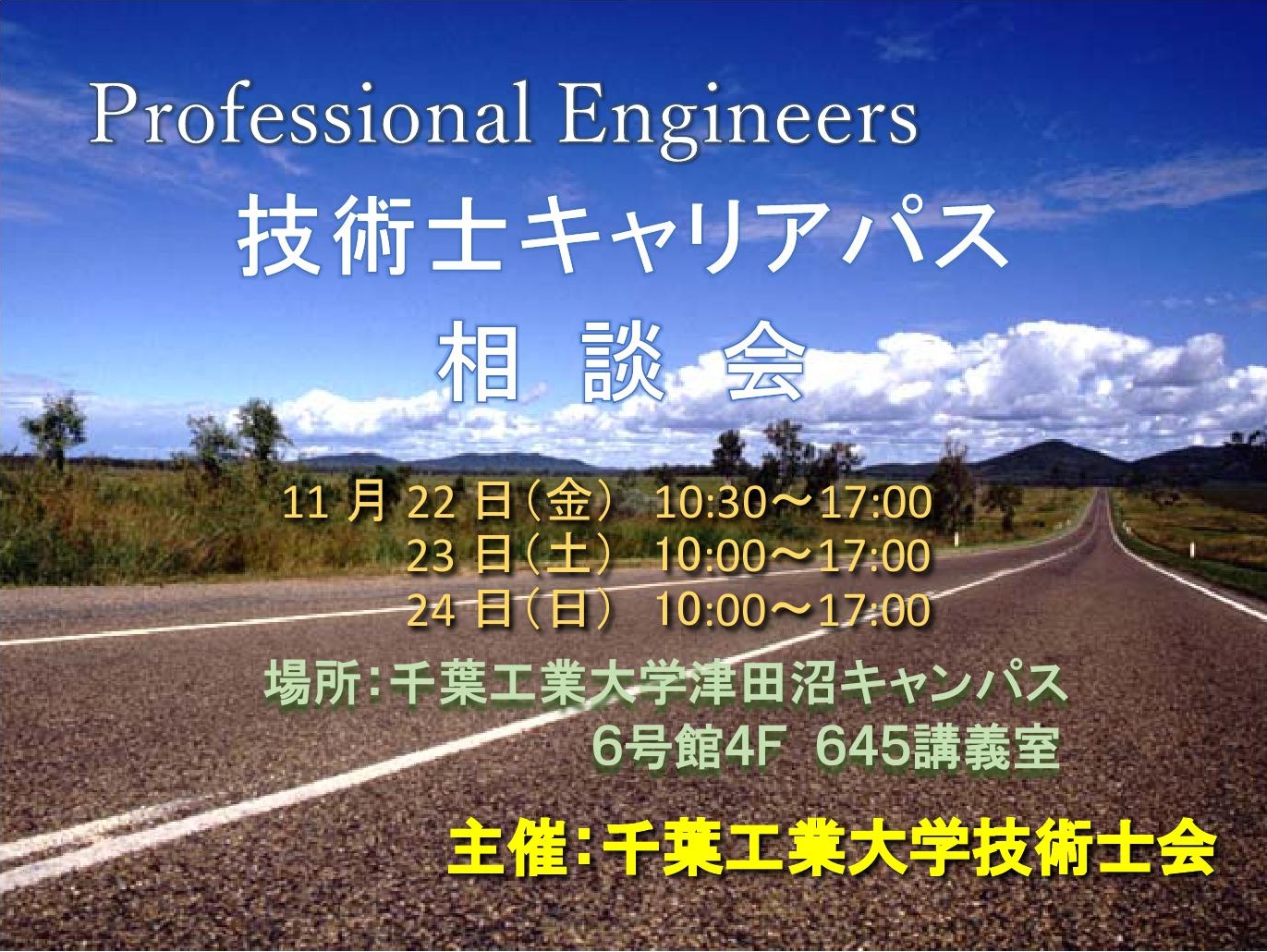本校出身の経験豊かな技術士による個別キャリアパス相談会となります。